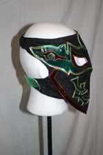 Mask features an open top to let your hair out, high quality fabric, multi layer details and velcro strap closure around the back of the head/neck.