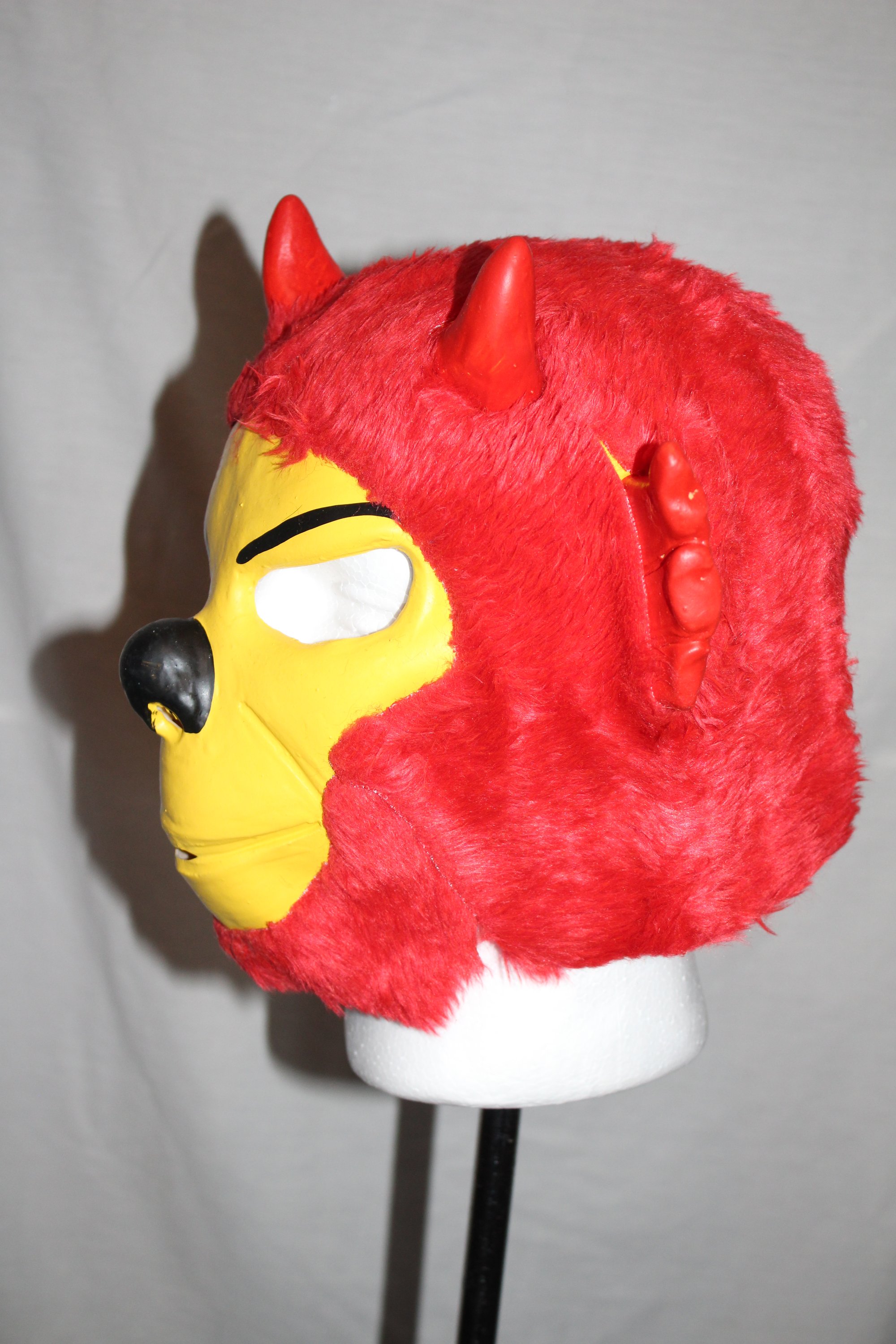 Mask body is 100% LATEX, with red fur fabric fused to the latex. This mask has no lace up, chin strap or back strap closure. You put it on the same as a standard halloween latex mask.